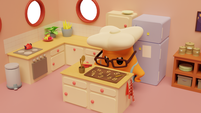 So each time she puts a baking mold for a cookie on the baking tray, Skip and the kids help Grandma Wobbel identify and name the correct number for that baking mold.
